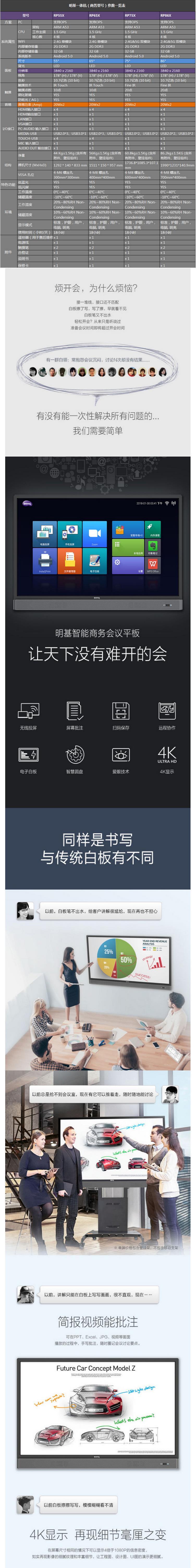 商品名称:明基(BenQ)RP75X 75英寸商务会议一体机 平板显示设备会议教学一体机
