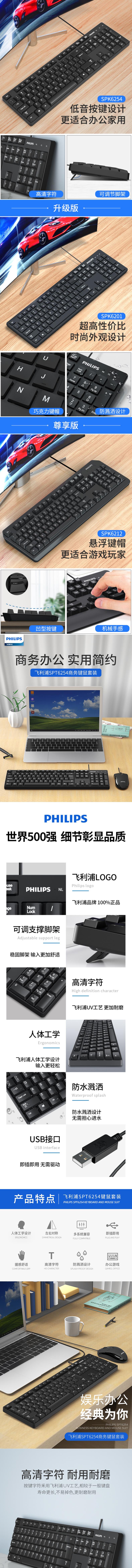 飞利浦键盘鼠标套装USB有线电脑台式笔记本办公专用打字机械手感