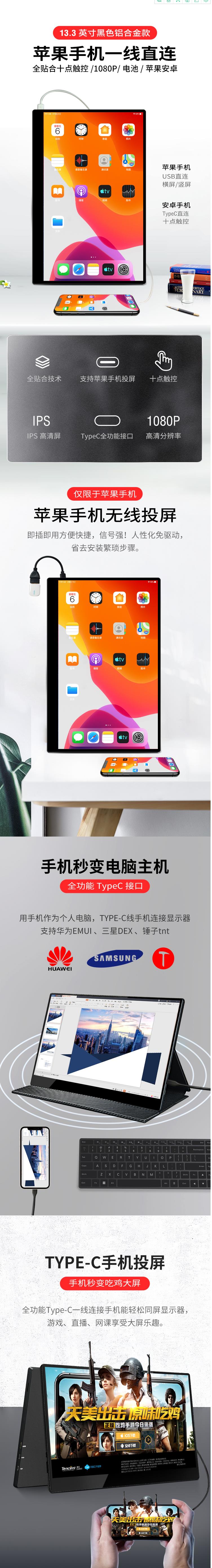 13.3英寸便携式全高清显示器电脑适用于苹果手机投屏15.6全新音箱