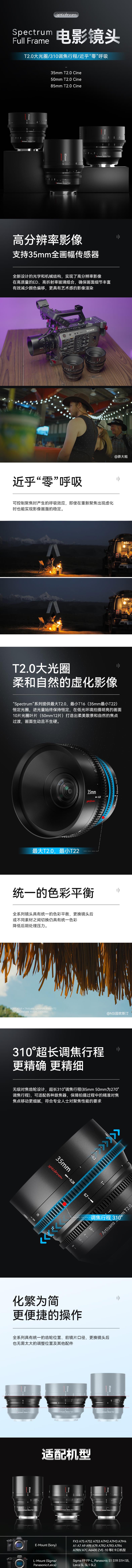 七工匠35mm50mm85mm T2.0全画幅电影镜头适用索尼E松下佳能R尼康Z