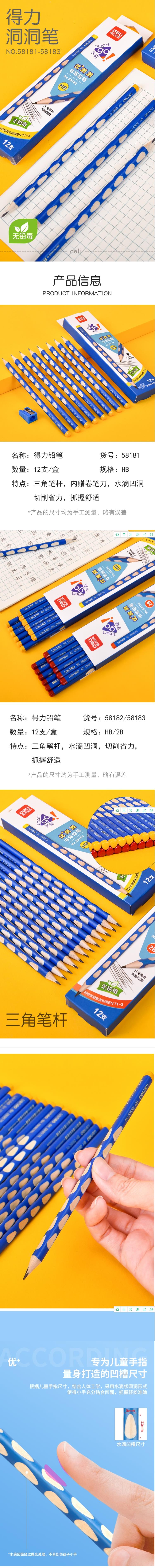 得力洞洞铅笔小学生HB矫正握姿粗杆三角杆书写考试2B儿童水滴铅笔