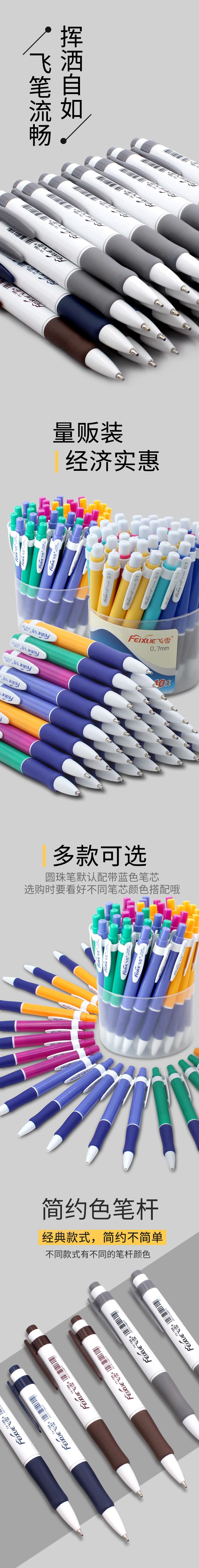 飞雪圆珠笔按压式办公蓝色商务学生用按动式油笔原子笔黑色圆珠笔0.7mm按压自动笔顺滑书写1.0mm笔