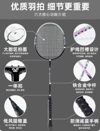 红双喜羽毛球拍正品耐用型超轻碳素拍子成人双拍儿童学生单拍套装
